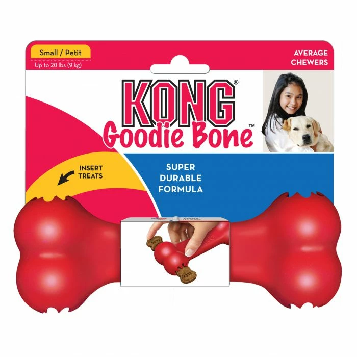 The KONG Goodie Bone™ toy engages dogs that delight in chew sessions. Made from the KONG Classic unique natural red rubber formula, this bone features the patented Goodie Grippers ™ that turn this entertaining toy into a fun treat dispensing challenge that can be stuffed with your dog’s favourite kibble. Want to extend the chew session? Stuff with KONG Snacks™ and entice with a bit of KONG Easy Treat™.